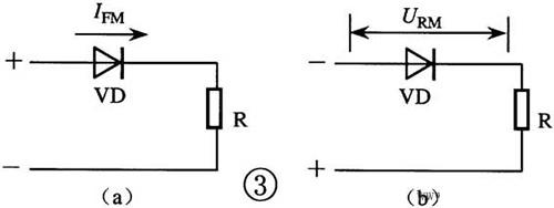 [3]、晶體二極管的主要參數有:(1) 最大整流電流IFMFM,是指允許正向通過PN結的最大平均電流(圖③a)。使用中實際工作電流應小于IFM,否則將損壞二極管。(2) 最大反向電壓URM,是指反向加在二極管兩端而不致引起PN結擊穿的最大電壓(圖③b)。使用中應選用URM大于實際工作電壓2倍以上的二極管。(3) 檢波或高頻整流二極管的最高工作頻率fM,至少應2倍于電路實際工作頻率。(4) 穩壓二極管的穩定電壓UZ值應符合電路要求。